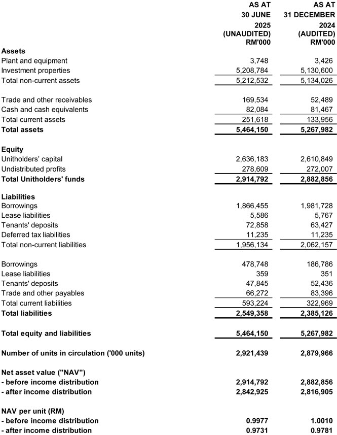 Excluding the effect of the aforementioned one-off compensation income, net property income for period under review in 2025 of RM138.8 million has effectively increased by 9.8% against corresponding period in 2024.