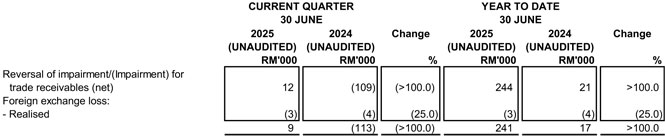 The unaudited condensed consolidated statement of profit or loss and other comprehensive income should be read in conjunction with the accompanying explanatory notes attached to the interim financial statements and the audited financial statements for the year ended 31 December 2024.
